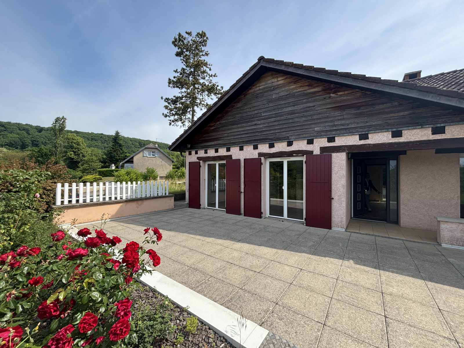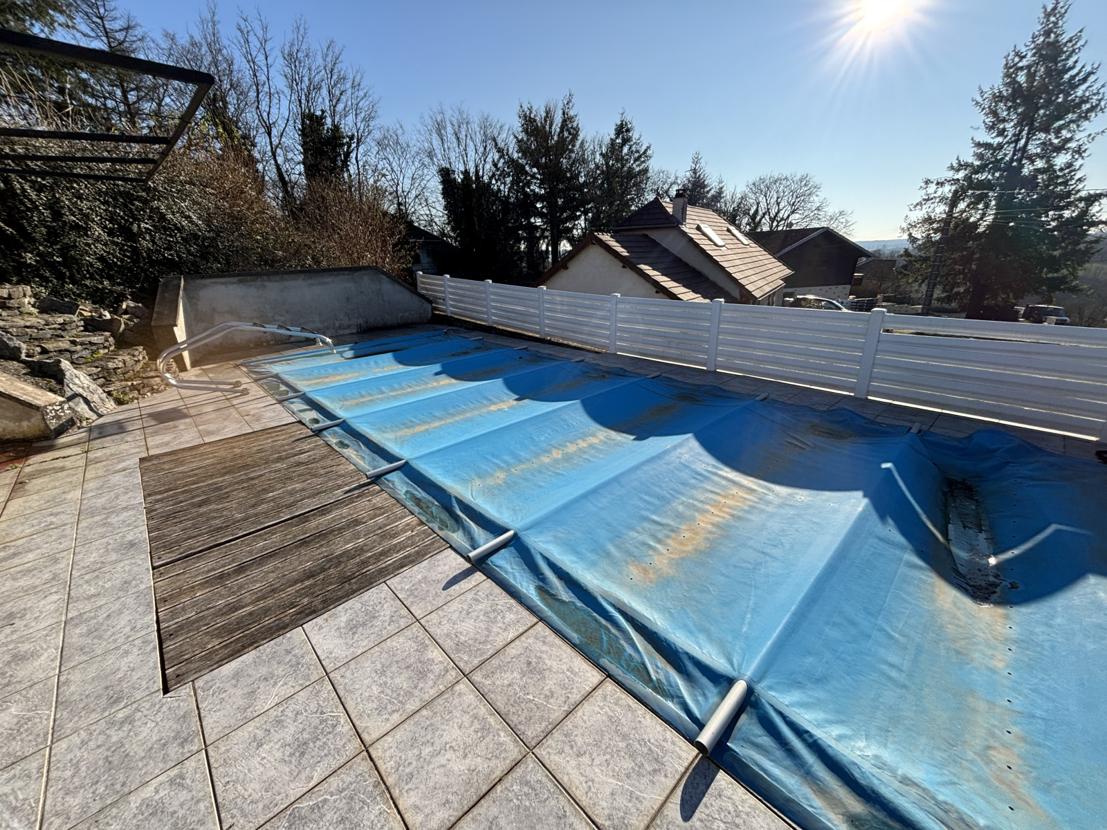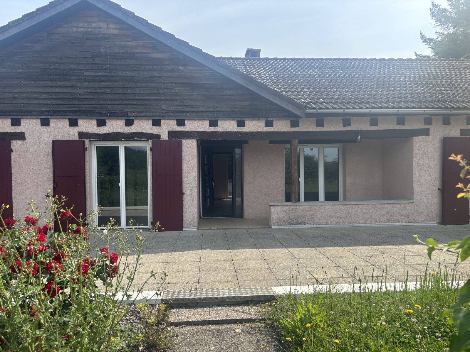 Côté extérieur, vous serez séduits par la grande terrasse sans vis-à-vis, la belle vue dégagée sur la campagne environnante, et la piscine creusée fonctionnelle, parfaite pour profiter des beaux jours en toute intimité.
