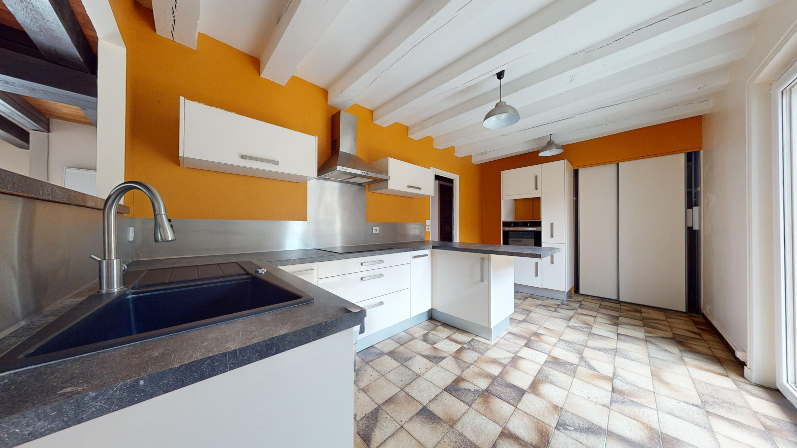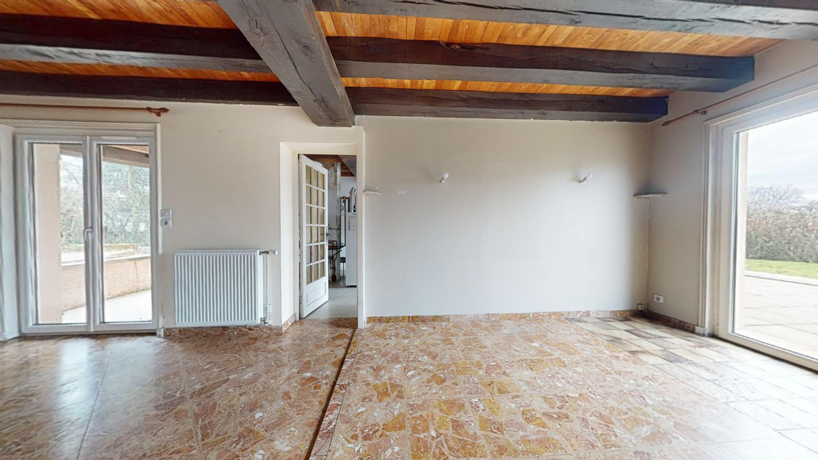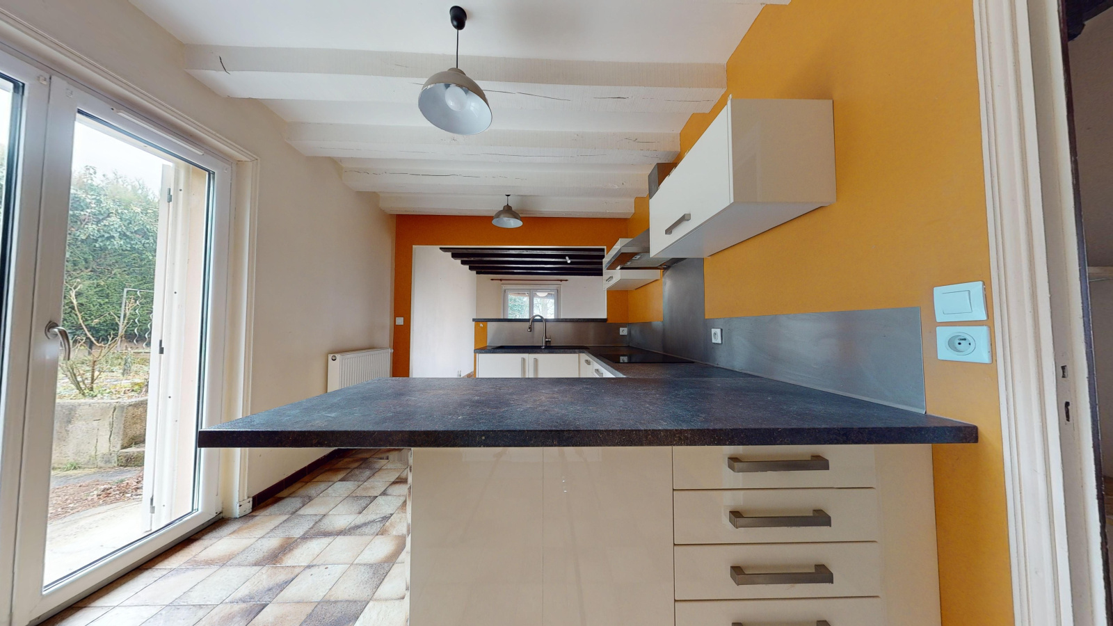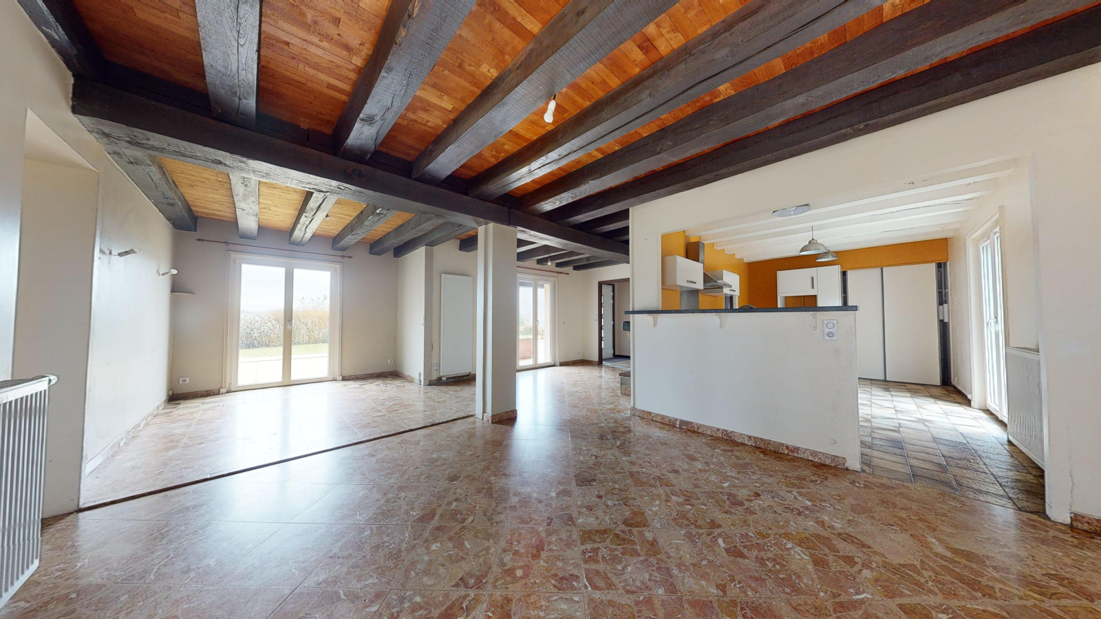 D’une superficie de 100 m2 la maison dispose de trois chambres, d’une pièce de vie traversante, et bénéficie d’une très belle luminosité. Les gros travaux ont déjà été réalisés : chauffage, huisseries, cuisine moderne et électricité refaits récemment. Il ne reste que quelques travaux de décoration à prévoir pour la personnaliser à votre goût.